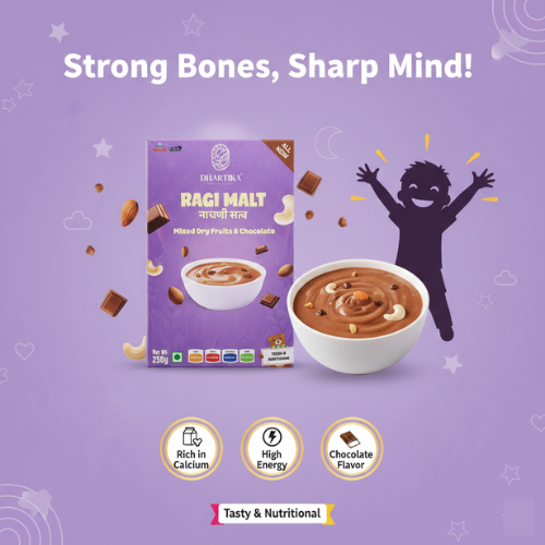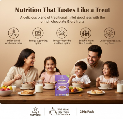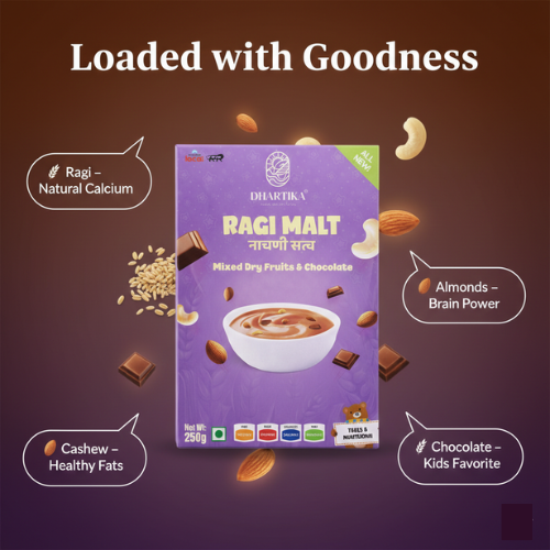Almonds, raisins, dates, cashews and more– the list of delicious dry fruits you can add is endless! Each one brings its unique blend of vitamins, minerals, and antioxidants, making this malt a true nutritional powerhouse with yummy goodness in every bite.